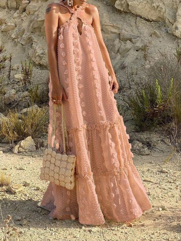 Women's Dresses Halter Neck Sleeveless Jacquard Maxi Dress