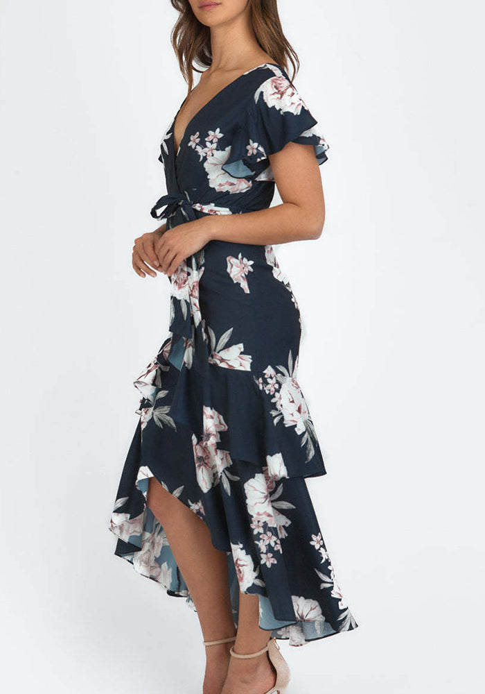 Sweet Colorful Printed V-Neck Irregular Skirt Dress
