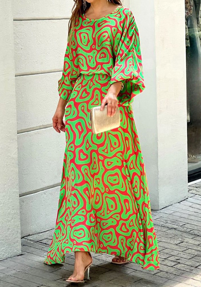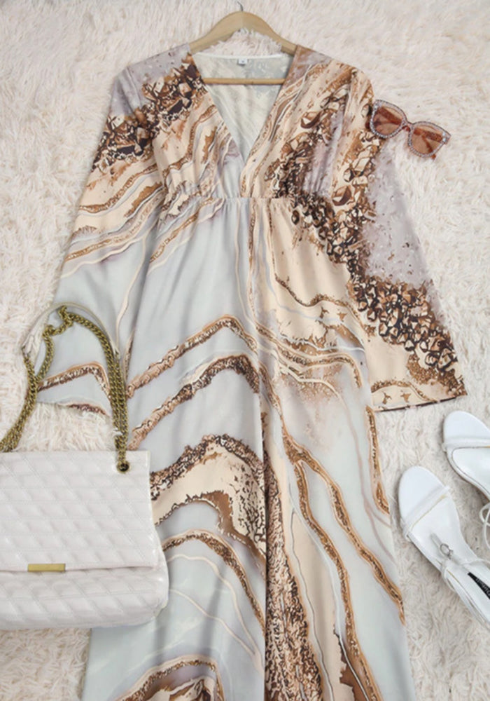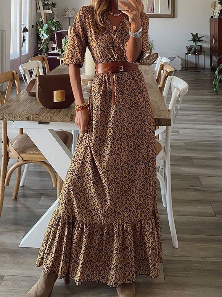 Women's Dresses V-Neck Printed Beard Mid-Sleeve Maxi Dress