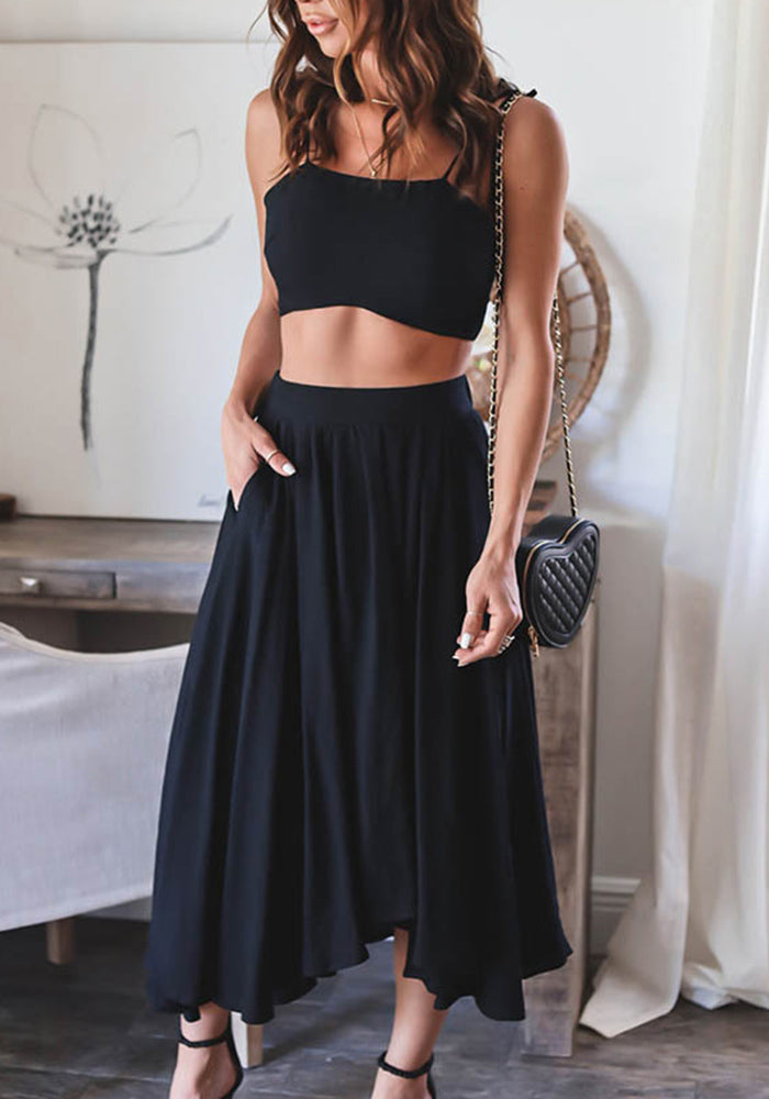Eye Candy Sleeveless Lace Double Crew Neck A-Line Skirt