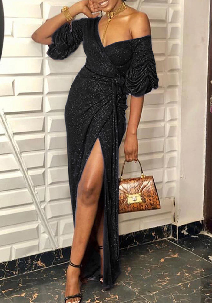 Sexy Solid Split Joint V Neck Evening Dress Dresses