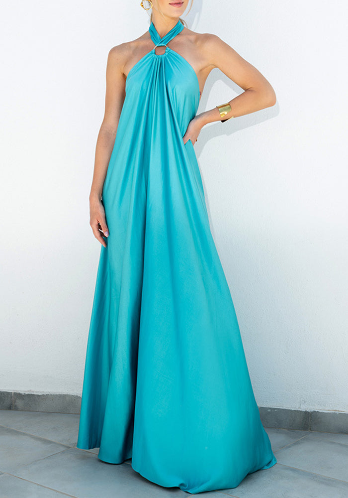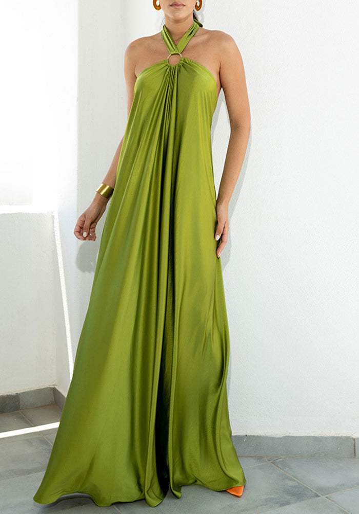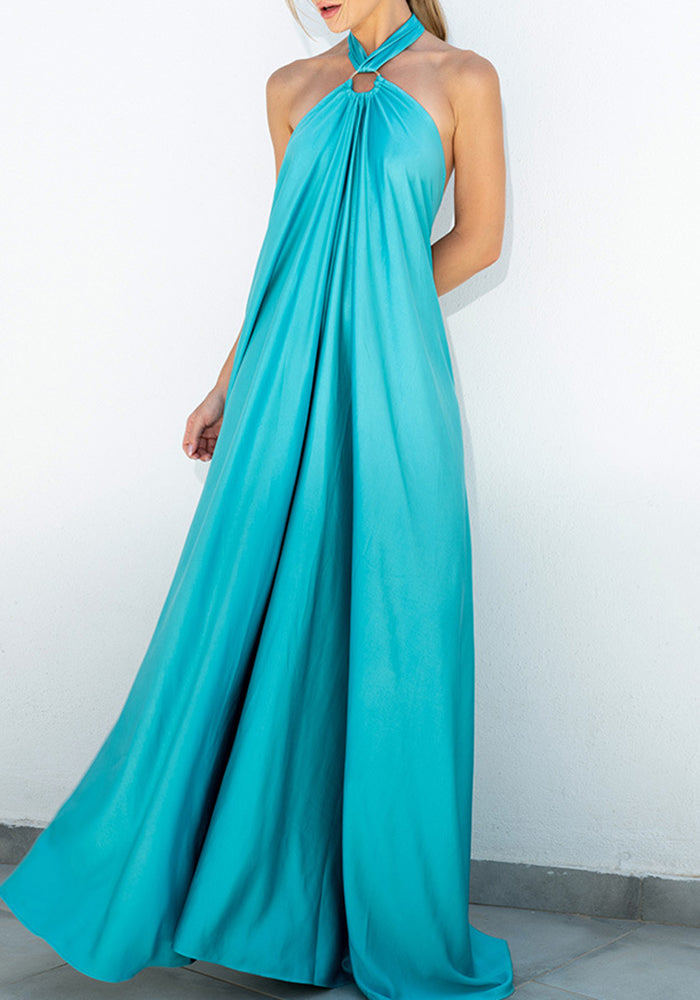 Casual Solid Patchwork Halter Straight Dresses