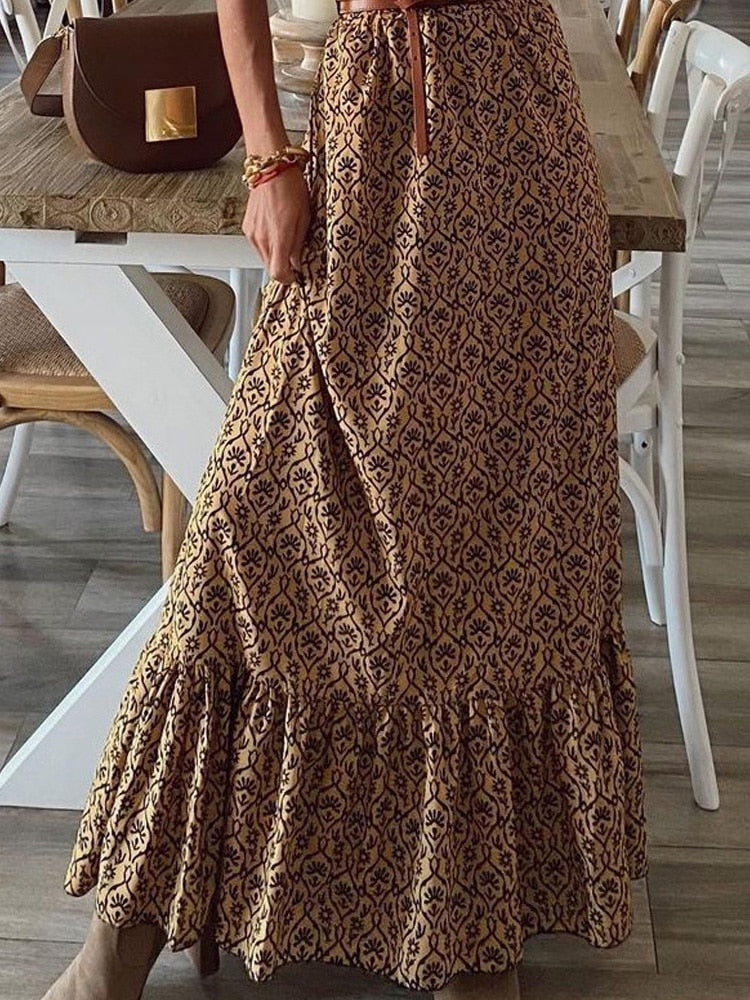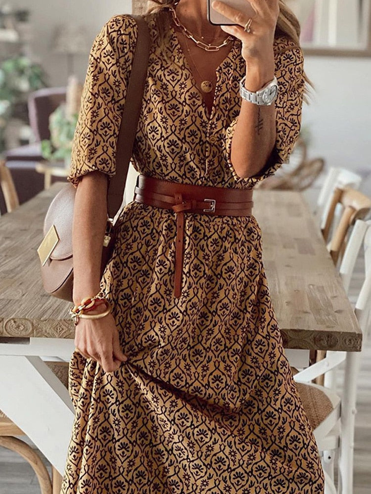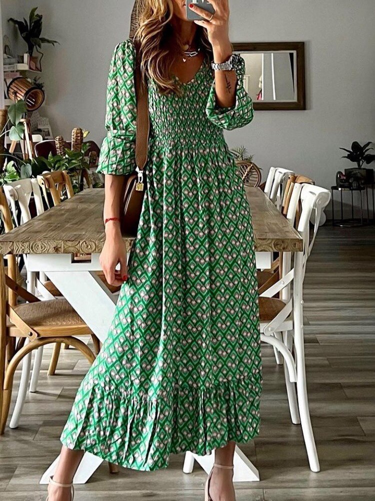 Fashion Chic V Neck Spring Summer Maxi Dress Loose Casual Ruffle A-Line Dress Elegant Floral Printed Women Half Sleeve Dresses