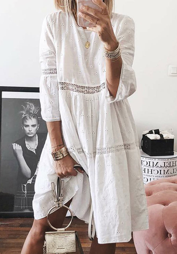 Casual Solid Split Joint O Neck Cake Skirt Dresses