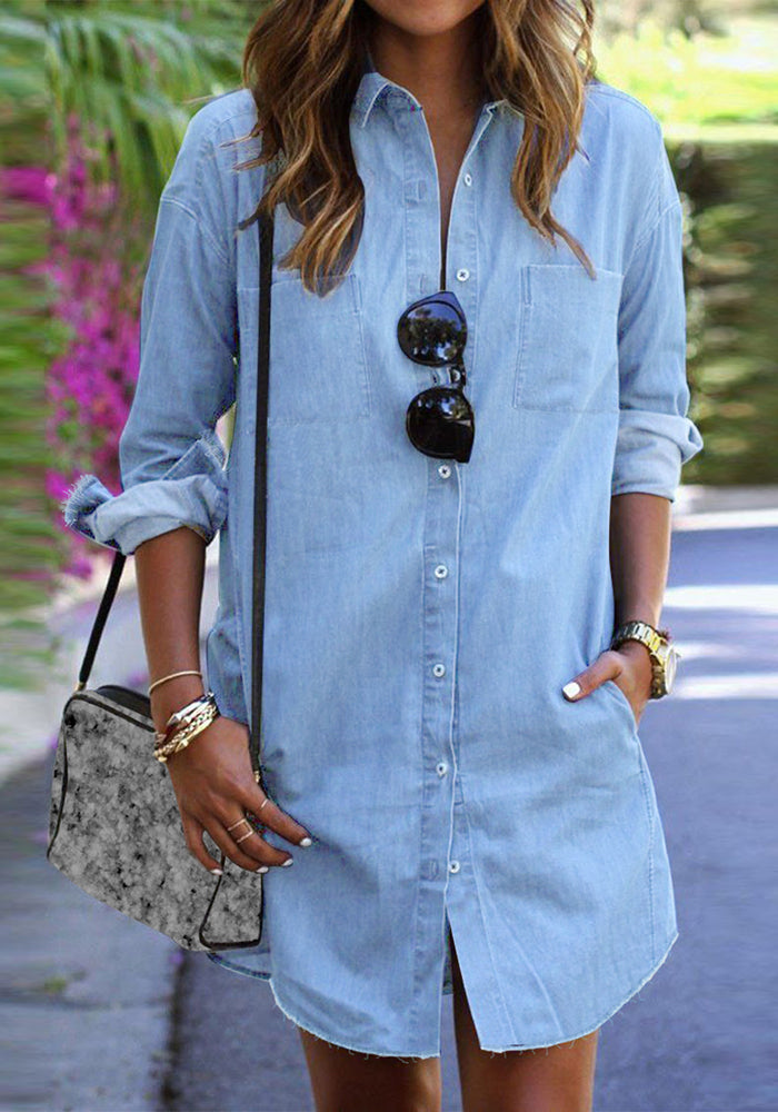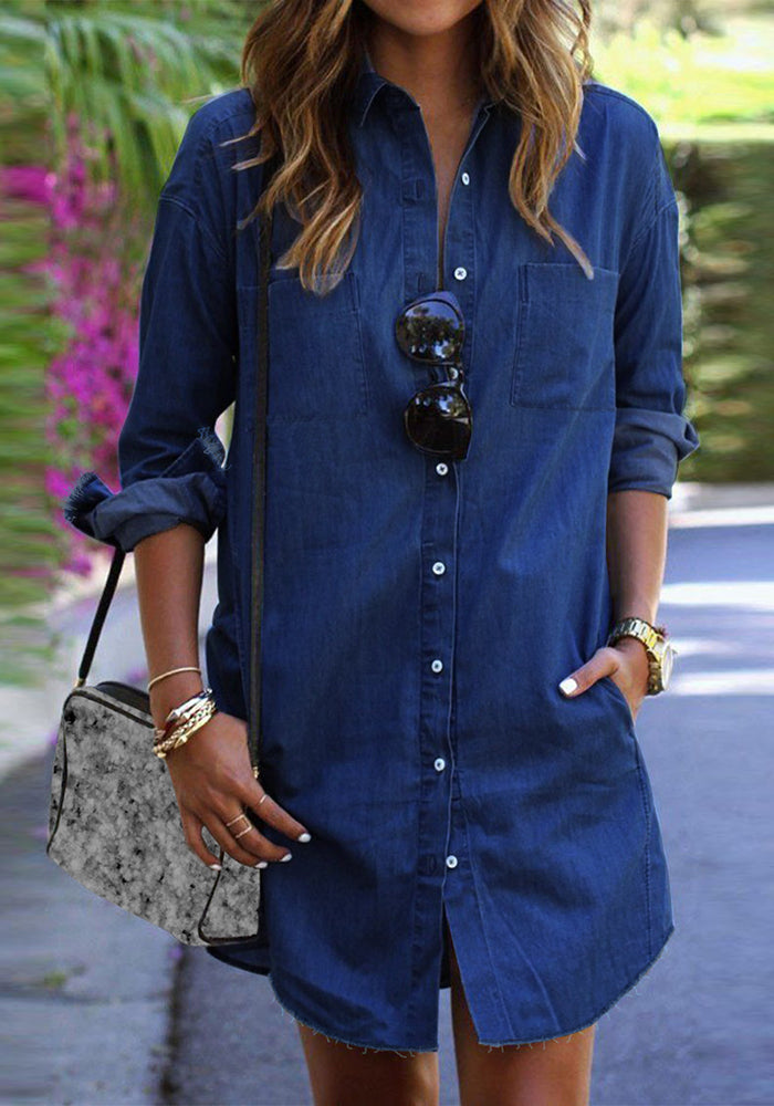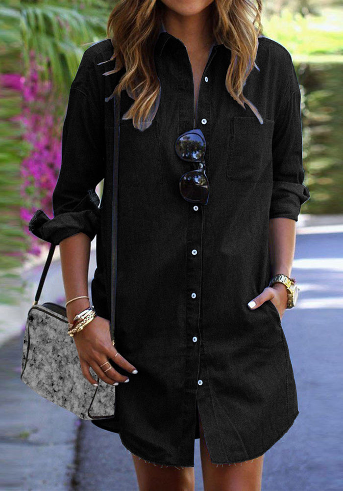 Casual Solid Patchwork Turndown Collar Shirt Dress Dresses