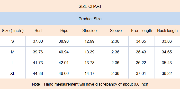 • Please allow 0.5-1" difference due to manual measurement