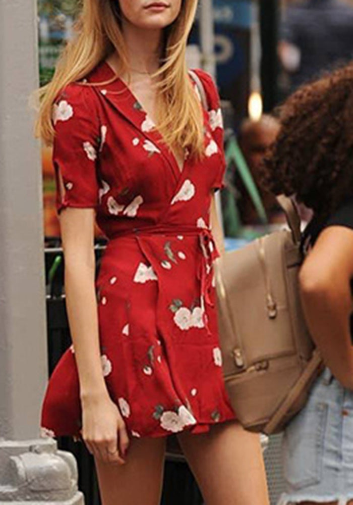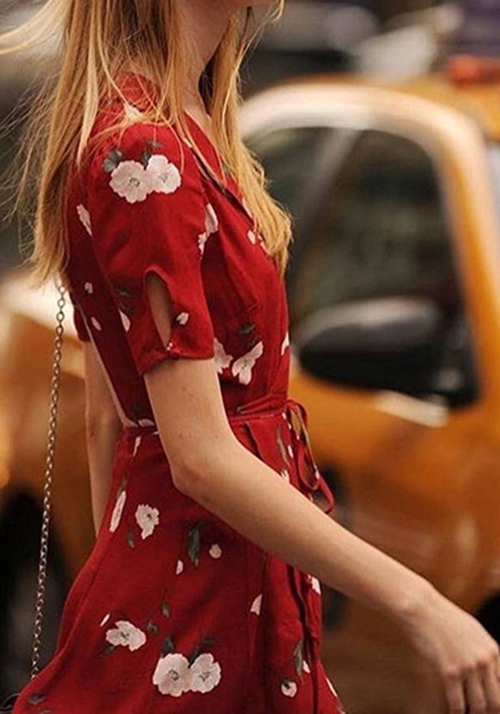 Point Of Pretty A-Line Skirt Red Print Lace-Up Dress